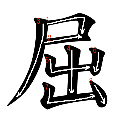 Japanese Jouyou-kanji “屈” means “Obey”, “Follow” or “Strong” etc.