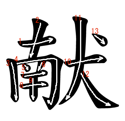“Dedicate” or “Give over” in Japanese kanji, and the Stroke Order and Meanings of Kanji “献”