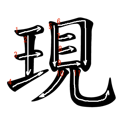Japanese Jouyou-kanji “現” means “Appear”, “Present” or “Disclose” etc.