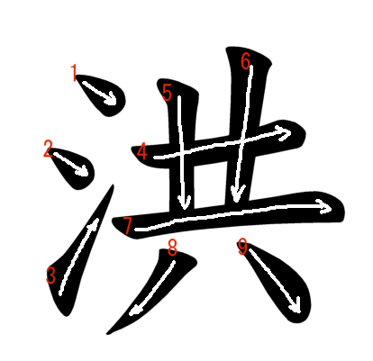 Jouyou Kanji “洪” Stroke Order