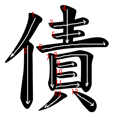 Jouyou Kanji “債” Stroke Order