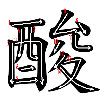 “Suffer” or “Pitiful” in Japanese kanji, and the Stroke Order and Meanings of Kanji “酸”