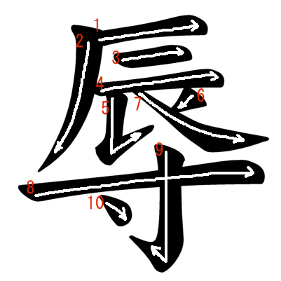 Jouyou Kanji “辱” Stroke Order