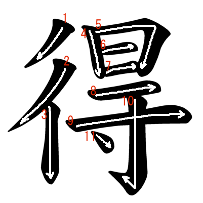 “Get” or “Obtain” in Japanese kanji, and the Stroke Order and Meanings of Kanji “得”