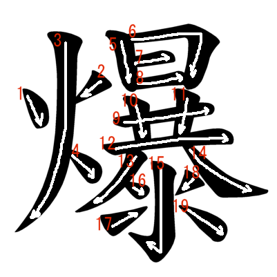 “Explosion” or “Burst” in Japanese kanji, and the Stroke Order and Meanings of Kanji “爆”