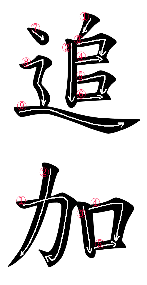 The below images are Japanese Kanji and Hiragana of some Japanese words which mean “Addition”.