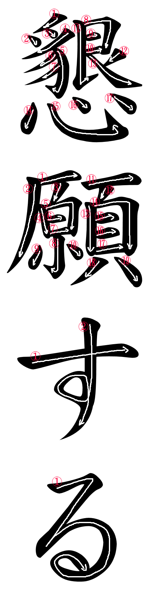 The below images are Japanese Kanji and Hiragana of some Japanese words which mean “Beg”.