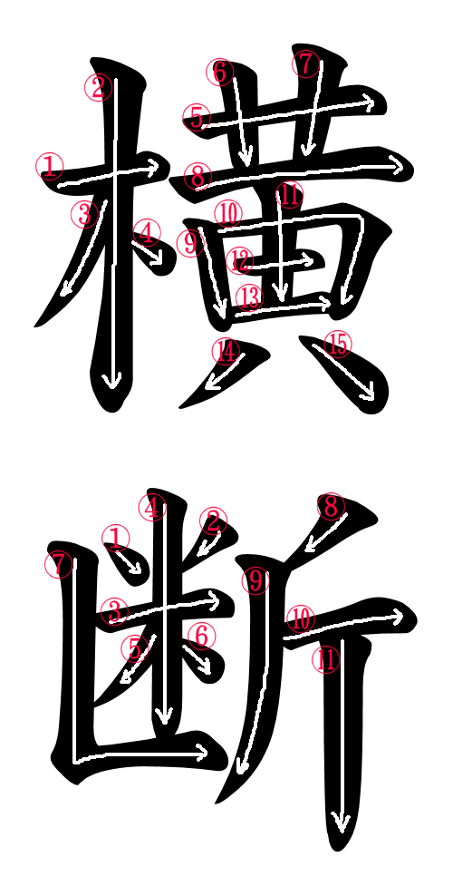 The below images are Japanese word images of some Japanese words which mean “Traverse”.