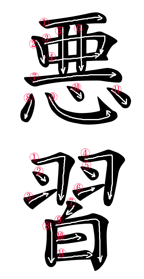 The left side Japanese word “悪習(あくしゅう-akushuu)” means “Vice”.